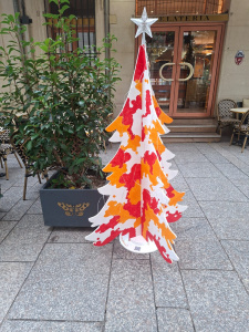 Collaboration entre le BDE et les commerçants locaux pour la décoration de sapins par des étudiants et des graffeurs professionnels.